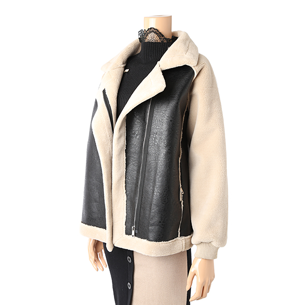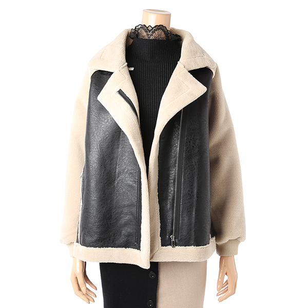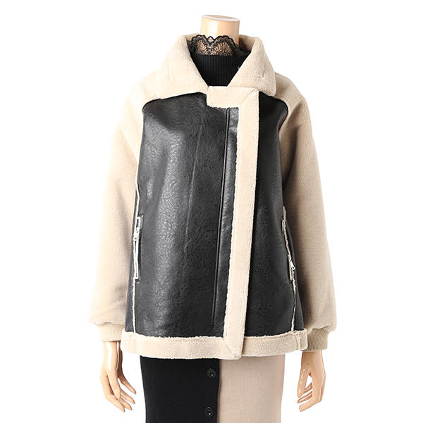 고급스런 인조 가죽과 부클 소재의 콜라보가 멋진 디자인의