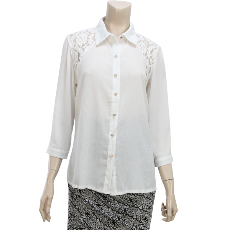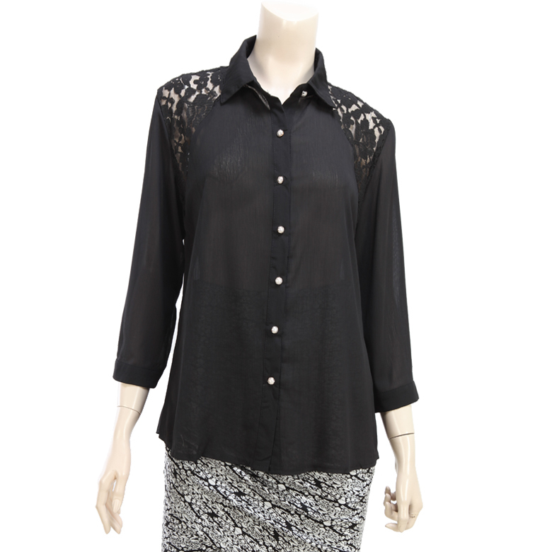 페미닌한 무드 가득한 플라워 시스루 포인트 디테일의 블라우스 입니다