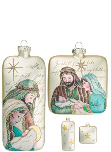 Gold Toned Holy Family Square and Rectangular Glass Christmas Ornaments Set of 2