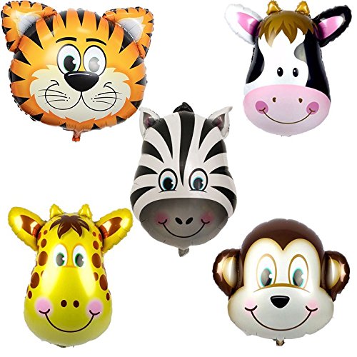 -. Title : Animal Safari Zoo Foil Balloons .Jumbo Size 36” Zebra, Giraffe, Monkey, Caw And Tiger. 12" 3.2 Helium Latex Pearl Balloons -Light Green,Dark Green And Brown . 29 Count.