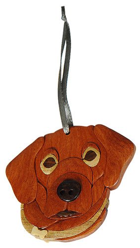 Dog Love your pet Christmas tree Ornament Handcrafted Intarsia Wood Mosaic Double Sided with Ribbon