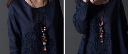 -. Feature : Aラインでお洒落な エスニック調 コットンカジュアルワンピースです。 ナチュラルテイストのネックレスをセットしています!是非一緒にお試しください! 重ね着にしてもOK!シンプルなシルエットで 大人な印象でゴージャスな花柄コード刺繍がかわいいアクセントに! / ゆったり感のあるオーバーシルエットで 女性らしい華奢感と、しっかりした素材が程よく体型をカバーしてくれます。 / 【Lサイズ】着丈 92cm 身幅 53cm 肩幅 39cm 袖丈 30cm / 【XLサイズ】着丈 93cm 身幅 54cm 肩幅 40cm 袖丈 31cm / 【XLLサイズ】着丈 93cm 身幅 56cm 肩幅 41cm 袖丈 32cm