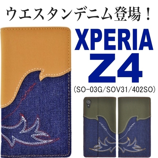 Xperia Z4(SO-03G/SOV31/402SO)用のウエスタンデニムケースポーチ。