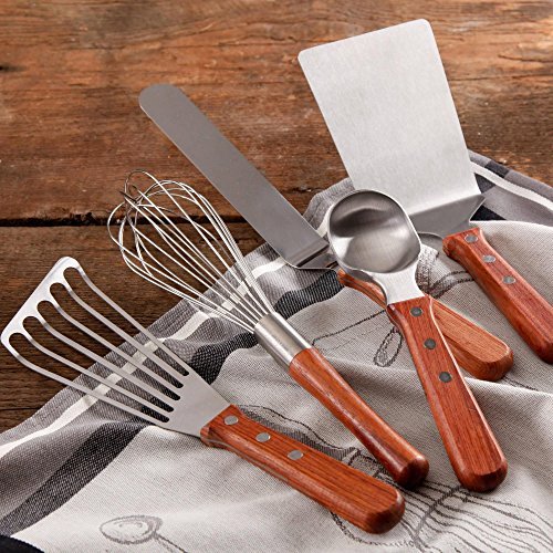 -. Title : 5-Piece Cowboy Rustic Baker's Essentials, Kitchen Tool Set with Short Wood Rosewood Handle, Red/Brown
