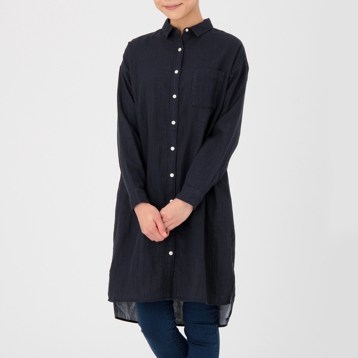Muji 오거닉 코튼 이중 거즈 원피스 부인M다크 네이비SALE