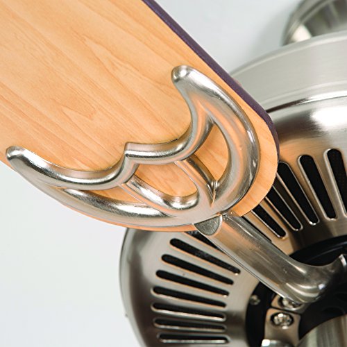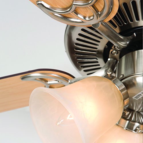 The Westfield ceiling Fan from Yosemite Home Decor features a classic ceiling Fan in a bright Brushed Nickel finish. The 52 inch ceiling Fan has maple finished Fan blades with four frosted alabaster glass shades. Hang this classic ceiling Fan in any room of the home for a completed look.Feature