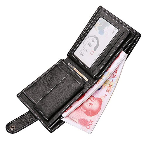 -. Title : Men Wallet Bifold, Minimalist Vintage Cowhide Leather Wallet With zipper Pocket