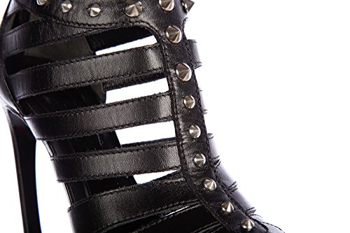 Alexander Mcqueen Damen Leder Sandalen mit Absatz Sandaletten bond stund Schwarz sandali donna con tacco pelle