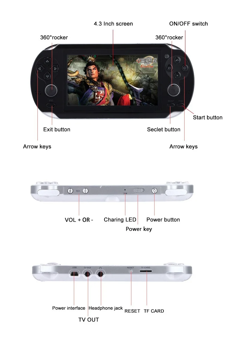 Connection port:MINI 5P USB ,3.5mm AUX earphone output/TV output,TF card holder