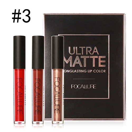 -. Title : 3 Pcs FOCALLURE Ultra Matte & Metallic Long lasting Lip Color Lipsticks Makeup