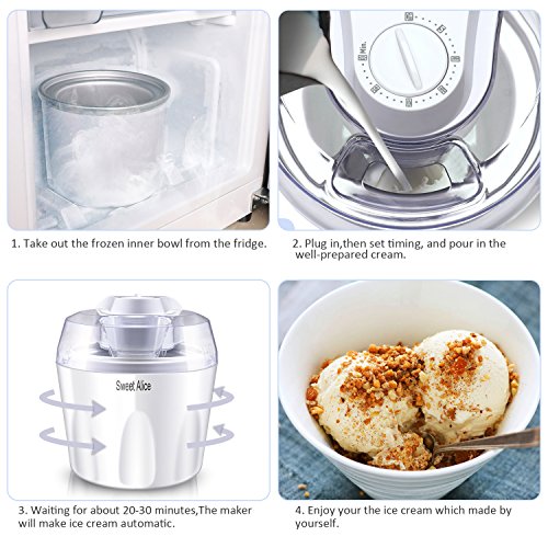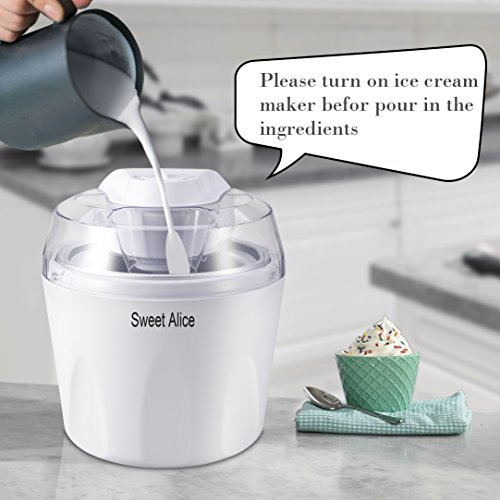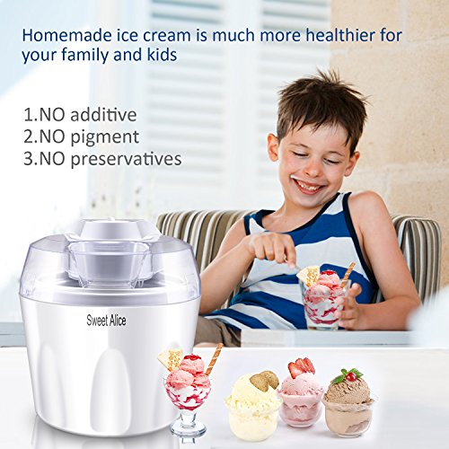 ❤【Health & Safety】 - Use Sweet Alice ice cream maker for homemade ice cream, there is NO additive NO pigment and NO preservatives, much healthier for you and your family ! You can control adding the amount of sugar and chocolate during the production process, which is a good option for people who like ice cream but want to control their calorie intake. The maker made with the food grade materials, there is CE & RoHs LFGB certified! Safety for long term use !