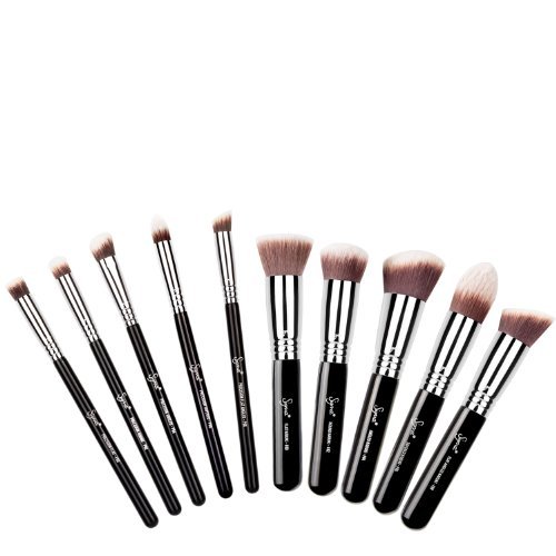 -. Feature : The Sigmax® Essential Kit contains ten face brushes specifically designed for a high definition, flawless makeup application. This kit features our exclusive Sigmax® synthetic filament, which was created to perfectly apply powder, cream and liquid products onto the skin without absorption into the bristles. The shape, density and height of each brush was designed to complement the different areas and shapes of the face. / EXCLUSIVE FEATURES: Sigmax® Fibers - Sigma Beauty's exclusive thermoplastic engineering polymer developed to evenly apply cream and powers products onto the skin for a high definition effect. Features premium filaments engineered for outstanding softness, heat and chemical resistance, mechanical strength, and high durability. Sigmax® fibers are antibacterial and hypoallergenic. Ferrules - The patented 3-ring brush ferrule is made with high performance SigmaAlloyTM for durability and strength. Patent No. D718060. Handles - Each brush handle is made from a lightweight, sustainable source of wood which receives 8 coats of paint, making them scratch resistant and guaranteed to last.