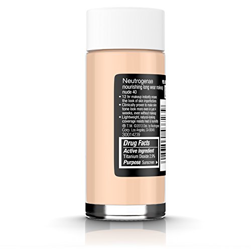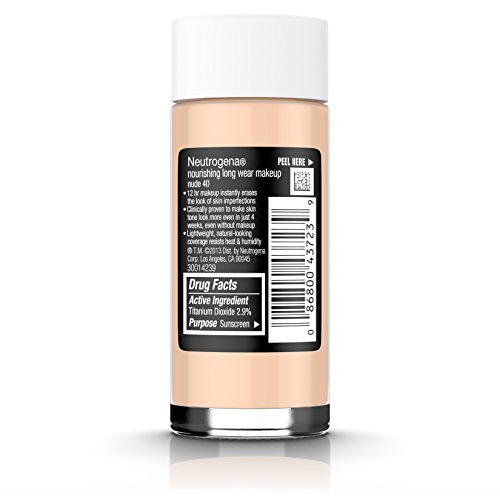 Neutrogena Nourishing Long Wear Liquid Makeup Broad Spectrum SPF 20 helps provide smooth, even, and long-lasting foundation coverage as it works to actually help improve skin's natural tone. This tone correcting foundation is clinically proven to help improve skin's healthy appearance, making skin smoother, softer, more radiant, and even toned in just four weeks. The silky, breathable 12 hour formula contains a Tone Correcting Complex, an exclusive makeup blend of nourishing antioxidants; soy; vitamins A, C, and E; and light diffusing powders. It offers 12 hour wear and resists heat and humidity for beautiful, healthy skin from day one, with even more beautiful results to follow.Feature