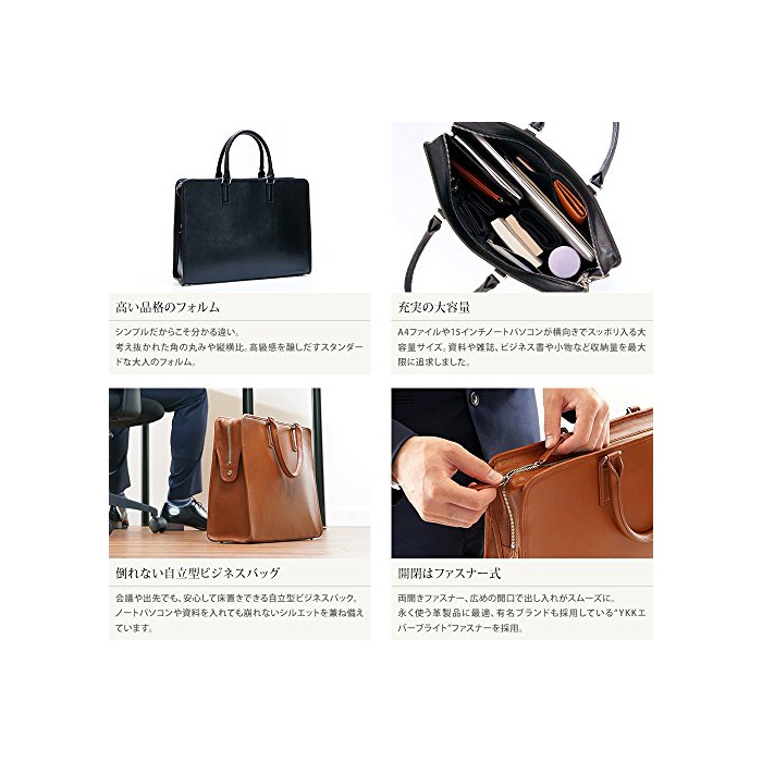 원본상품명: 【本革】 ビジネスバッグ ブリフケス メンズ A4 (ブラック) Business Leather Factory