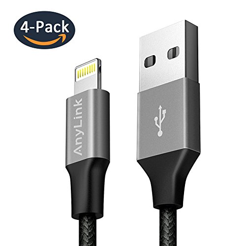 Anylink Lightning Cable, iPhone Cable 4Pack Assorted Lengths (2x3ft, 2x6ft), Nylon Braided Lightning to USB Cable, Durable and Fast Charging Cord for iPhone 7 Plus 6s Plus 6 SE 5S, iPad Mini Air, iPod