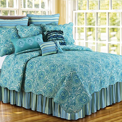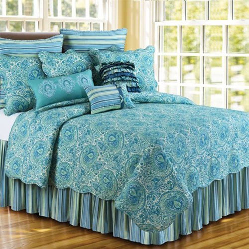 Soft shades of blue and green in multiwidth stripes.