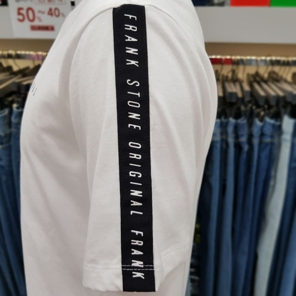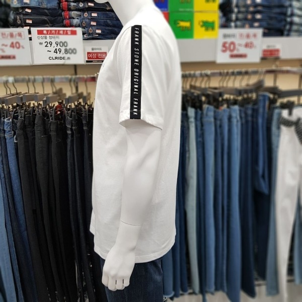 남성용 소매 테잎 반팔 티셔츠입니다^^2018년 여름 신상으로가벼운 면 소재에 앞면에는 한줄 레터링과양쪽 어깨라인의 테이프 포인트가있어깔끔하고 더욱 세련된 느낌의 살짝 루즈 핏의 디자인입니다.남방이나 점퍼안에 이너로 착용하셔도 예쁩니다.