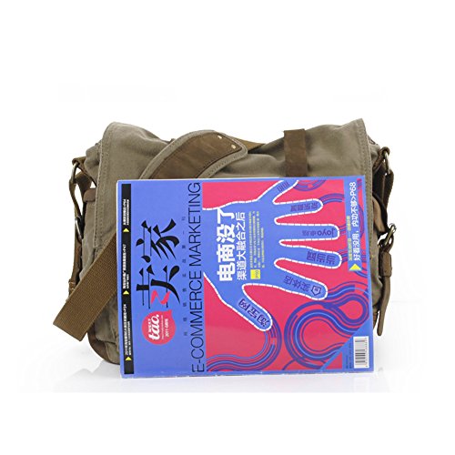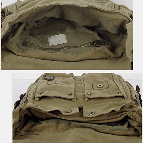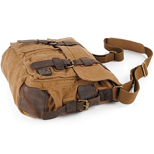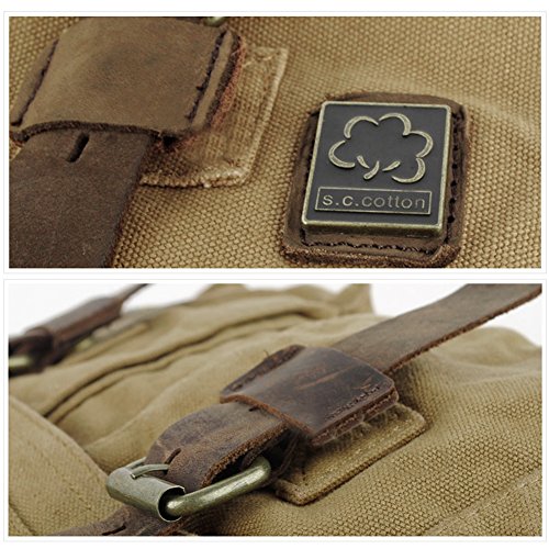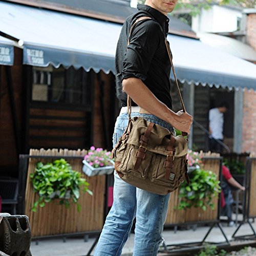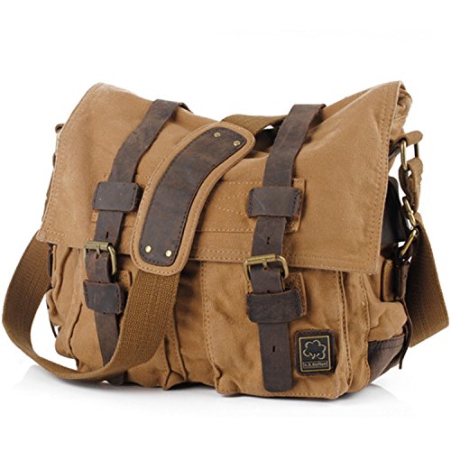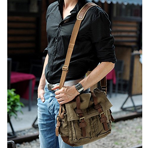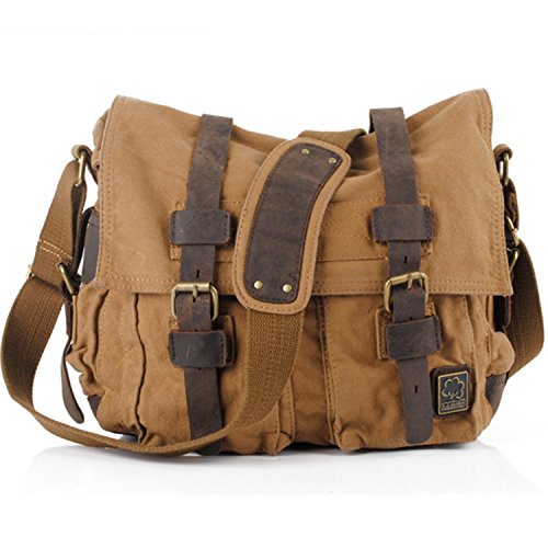-. Title : Messenger Bag,Bienna Vintage Military Canvas Satchel Laptop Over Shoulder Crossbody Sling Bag Handbag Side Bags with Leather Straps for Men School Outdoor Sports EDC 15"-Coffee