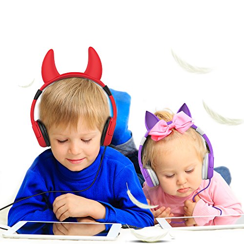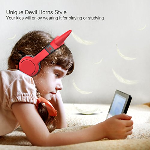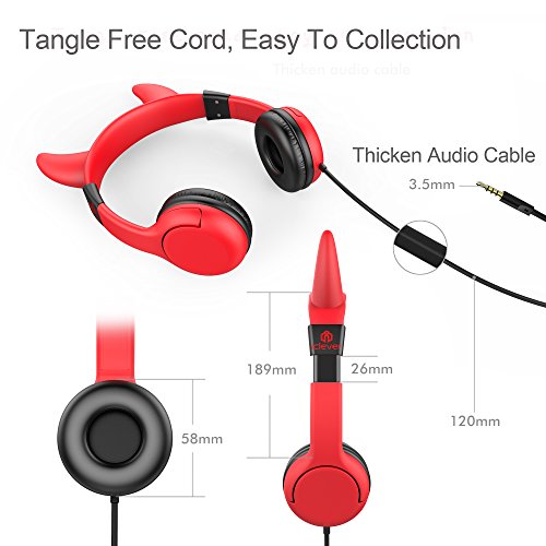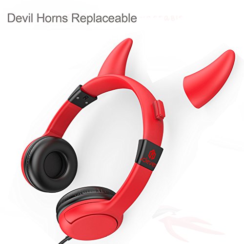 [Devil Kids Headphones] iClever BoostCare Wired Over the Ear Headsets with 85 Volume Limited, Food Grade Silicon Material, Bold Cable, Red