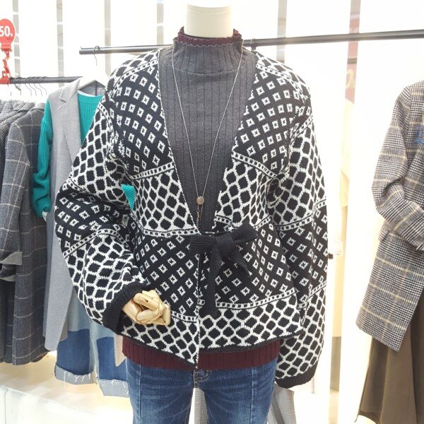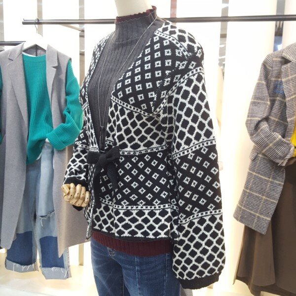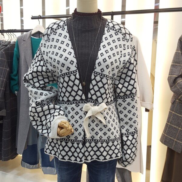 고급스러운 니트소재에 잔잔한 마름모패턴이 세련된 자켓형 가디건아이템입니다.러블리한 벌룸소매단,앞면 여밈부분 벨트스타일의 끈이 있어 리본으로도,모던한 허리끈으로도 연출할수있는 여성스러우면서도 걸크러쉬한 착용이 가능한 제품입니다.