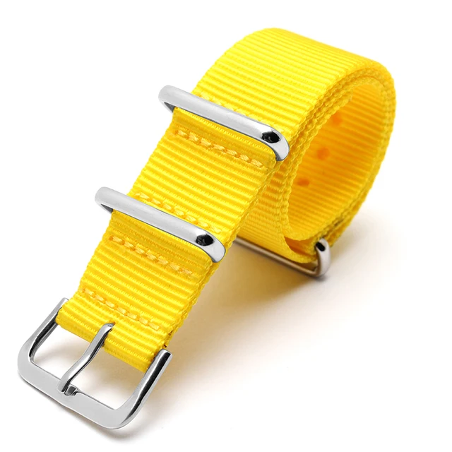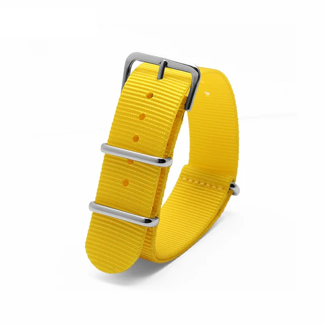 2016 Wholsale 나일론 손목 벨트 18 미리메터 20 미리메터 22 미리메터 24 미리메터 시계 스트랩 노란색 벨트 스틸 배포 걸쇠 무료 배송