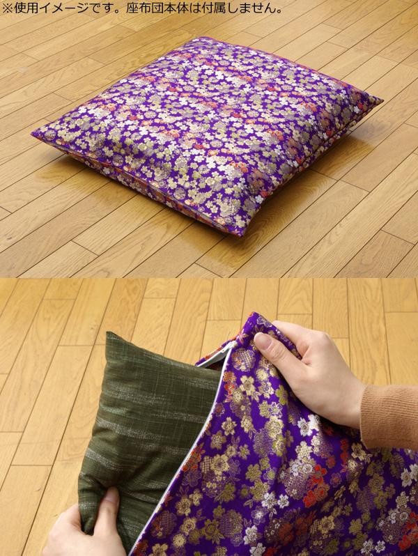 金襴生地を使用した仏前座布団用カバーです。お手持ちの座布団に被せるだけで仏前座布団としてご使用頂けます。着脱しやすいファスナータイプです。
