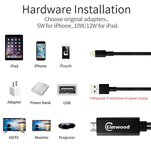 Premium picture quality with 1080P esolution Striking HD 1080P picture performance offers exceptional clarity and detail. With iPhone to HDMI Cable, you can experience it across all your entertainment. "Plug and Play" works perfectly The iPhone lightning to HDMI adapter has "3 in 1" make usage easier. the HDMI port to the TV, one lightning goes to the iPhone, and the USB port goes to a power device. Just click "trust" and it will sync successfully. Enjoying sports If you are looking to get more from sport match, with the lightning to HDMI cable makes it lively, work iPhone's most sports live, Web sports videos NBC Sports, beIN SPORTS, SkyGo and websites etc. transform to the big HDTV, projector and cars (except Honda) Good choice for sharing Using the lightning to HDMI adapter is the best way to watch all of your favorite content from your iPhone/iPad. It makes it easy to share your happiness with all audiences! #NOTE# 1. Not support Netflix, Amazon Prime videos, Hulu, Comcast tv, Xfinity, Vudu, DIRECTV, etc. Because there are privacy restrictions which prevent any of paid for subscriptions to be cast, second display mirroring is blocked, only audio output. Please refer to the terms and conditions of those. 2. Make sure of right adapter, iPhone/iPad original adapters are the best choices. If lower, it will not work very well. (5V/1A for iPhone, 5V/2A-2.4A for iPad) 3. The Lightning to HDMI Cable is NOT designed to charge iPhone, iPad or iPod touch. 4.The HDMI lightning cable will make your iPhone charge go to 100% while plugged in. In fact, It doesn't charge and it's only a mark of display mode. Because the designer marked it as the same to simplify the difficult task of mirroring. 5. It supports most of cars, except Honda. If you have any question, please feel free to contact us. We're always at your service! 0 |