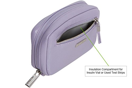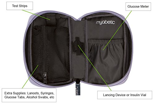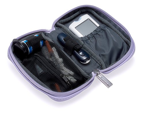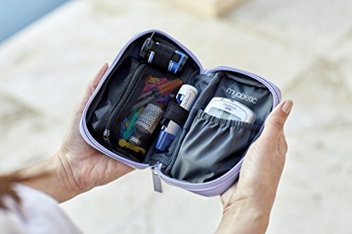 Studio : Myabetic Publisher : Myabetic Binding : Health and Beauty Product Description Is the black nylon case that came with your meter falling apart? Do you want a stylish, compact replacement to hold your diabetes testing essentials? This is the perfect replacement for that standard black case that came with your meter. The features include a large elastic pocket that accommodates all meters on the market with dimensions 5 L x 3 W inches (accommodates OmniPod PDM) as well as two interior elastic loops. It also includes one zipper mesh pocket for syringes, lancets, lancing device, etc. The front zipper pocket includes insulation lining. The exterior has an attached D-Ring which allows for optional versatile attachment options: wrist strap (included), keychain, lanyard, etc. Product includes an optional wrist strap. For insulin pen(s) users, try our Banting Diabetes Wallet, also available on Amazon. This case will not accommodate an insulin pen. 0