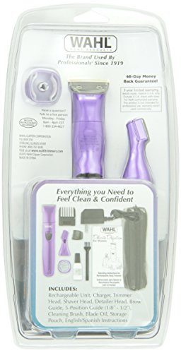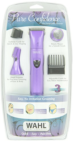 -. Binding : Health and Beauty -. Brand : Wahl -. EAN : 0043917986517 -. Feature : Detail Head and Rotary Shaver for more versatility. / Adjustable guide allows for detailing and edging / Easily removes unwanted hair without nicking or pulling / Rechargeable / Made for use in USA electrical outlets only. Not for international use. -. IsAdultProduct : 0 -. IsAutographed : 0 -. IsMemorabilia : 0 -. Label : Wahl Clipper Corp -. LegalDisclaimer : These statements have not been evaluated by the Food & Drug Administration. This products is not intended to diagnose, cure, mitigate, treat, or prevent any disease. -. Manufacturer : Wahl Clipper Corp -. Model : 9865-100 -. MPN : WAH-018 -. NumberOfItems : 1 -. PackageQuantity : 1 -. PartNumber : WAH-018 -. ProductGroup : Beauty -. ProductTypeName : BEAUTY -. Publisher : Wahl Clipper Corp -. ReleaseDate : 2008-09-11 -. Studio : Wahl Clipper Corp -. Title : Wahl Pure Confidence Purple Rechargeable Trimmer #9865-100 -. UPC : 043917986517 -. Warranty : Limited 3 year warranty