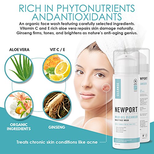Mild Gel Face Cleanser. Acne Face Wash Pore Minimizer and Mild Exfoliator in One Comprehensive, Skin Saving Organic Facial Cleanser