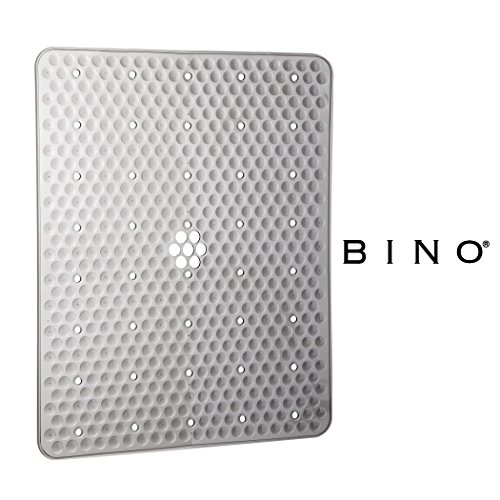 BINO Anti-Bacterial Kitchen Sink Protector Mat , Grey - Eco-Friendly - Mold and Mildew Resistant with Quick Draining Design