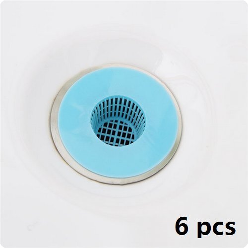Stock Show 6Pcs Practical/Creative/New Free Size Plastic Sink Drain Strainer Hair Catcher, Blue