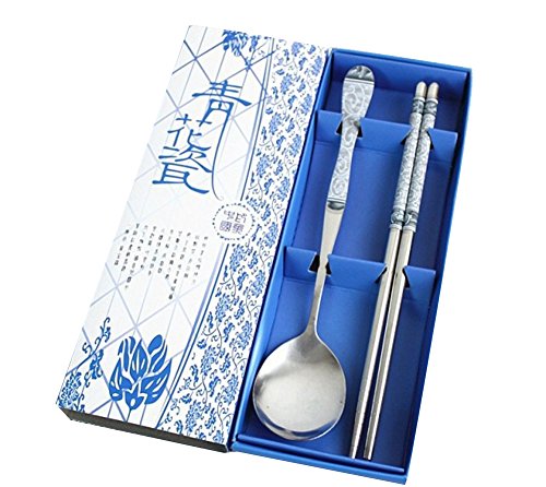 - Feature : Beutiful blue and white porcelain pattern / Chopsticks length:7.3 inch; Spoon length:7.4 inch / Material: high quality stainless steel / Great gifts for your friends and yourself / Pkg include:1 pair chopsticks; 1 pcs spoon; 1 pcs stylus