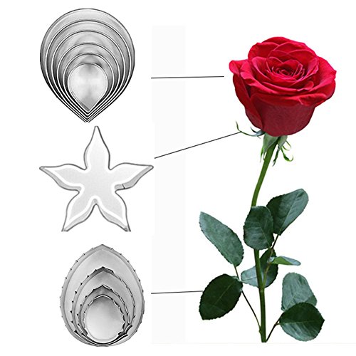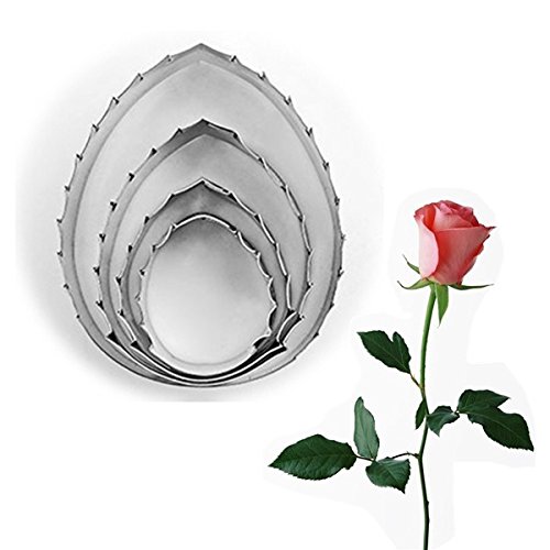 - Materials: stainless steel, Cutter Size: rose petal: (1)2.5*3 (2)3.2*2.5 (3)4*3.3 (4)4.6*3.8(5)5.3*4.3 (6)6.3*5cm rose leaf:(1)5.6*4.4 (2)4*3.2 (3)3*2.6 (4)2.5*2cm rose calyx: 5*5cm