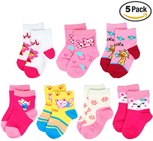 Studio : Liwely Publisher : Liwely Binding : Baby Product Product Description A Soft Baby Socks Set in Cute pattern is made from high quality close skin Cotton for the ultimate Softness and Absorption. We all know a comfy baby is a happy baby. Elastic band at ankle ensures that socks stay on in all kinds of activity, it's Stretchy and Easy to wear! The Baby Socks will help keeping your baby's little feet Warm and Cozy on any occasion. They are perfect for wearing to parties, events, holidays, church, for family portraits and more. Product Basic Information: Material : 80% Cotton, 17% Nylon, 3% Spandex Gender: Boys and Girls Package quantity and Color : 5 Pairs of Cute design. Perfect addition to any outfit. Sole Length : Aprx 4" - 5" Fits any Newborn/Infant 6 months up to 15 months old. Fabric Care Instructions: - Wash gently in cold water by hand or machine. In case washing by machine, you should put lace socks in a mesh laundry bag before washing machine. - Do not bleach or wash with harsh detergents. You should wash them on the gentle cycle in mild detergent. - Do not dry clean. - Do not wring, Drip dry and pull to shape. - Ironing is not necessary. Follow the above instructions for a guality lasting wear. Great accessories for gift giving or fitting any baby outfit. Give parents a present they need! Combine them with other baby shower products and offer the most affordable and gift! 0