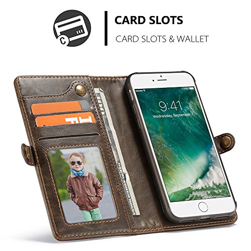 Product Description Phone Case, Premium Leather Protective Shell,With Detachable Magnetic Base and Wrist Strap,Folio Flip Cover for iPhone 6/7 Samsung Galaxy 7/8, Multi-color Wallet Case for Men Women DETACHABLE MAGNETIC SLIM CASE Wrist Strap GREAT BONUS With this detachable magnetic hand case,you can carry the case with the wallet folio or you can detach the case from the wallet if you want to carry only the hard case without the wallet.What's more,the detachable wrist strap and hand ring stand, it will be more convenient for you to take you phone or enjoy video with it. PREMIUM LEATHER MATERIAL This wallet phone case is entirely handmade of classy, sleek genuine leather. Each case is unique, reflects our quest for perfection in form, detail and fabrication. They look stylish and feel nature and soft. VIEW FROM ANY ANGLE PERFECT CUT-OUT This wallet case can switched to a horizontal position and act as a firm stand. Precise cutouts and includes raised edges to keep the camera or screen from scratching or touching the ground. MULTIFUCTIONAL WALLET CASE With convenient card slots and cash pocket disign, you could slide your credit card and or cash into the card slot, which allows you to easily access your cards or cash conveniently,then you could leave your "big"wallet at home. CONVENIENT TO USE Precise cutouts for speakers, earpiece, camera and other functional ports allow to access to all ports and functions easily, without removing the case.Smart Design allows you to easily flip the inner holder to access all your cards conveniently. WARRANTEE CUSTOMER SERVICE We trust that you will like the phone case. If you aren't 100% satisfied we will provide you with a refund or a free replacement - which ever you prefer.Just add it into your cart.