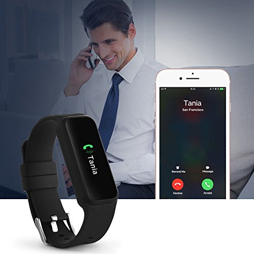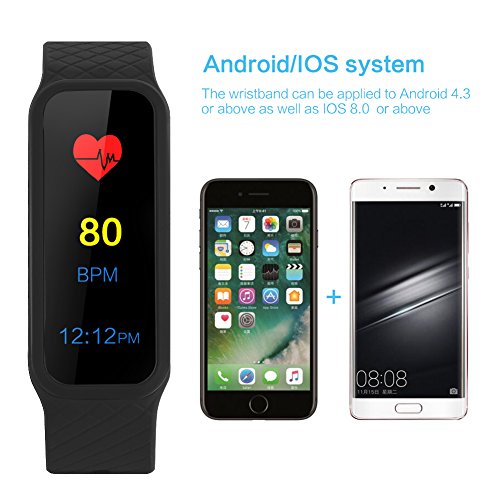 -. Feature : Multi-Functions: Pedometer,sleep tracker,calories record,step counting,sleep quality monitoring,sync date and time, HR (heart rate) monitoring, notifications,sedentary alert, health fitness. / Heart Rate: With a built-in heart rate detector, detect heart rate any time, heart rate control in 120 times per minute is approP.R.Iate, too fast, too large, can not reach the effect. / Vibration Remind: Remind your alarm clock,task,phone calls,message,sedentary and won't lost your phone.Android has QQ and WeChat remind. / IPX7 Waterproof: Normally work under 1 meter under water for 30 minutes or more, this also means that the user no need to worry about the rain, shower, or wash their hands, but if a similar long time swimming will be damaged. / Compatiability: It can be compatible with iOS 8 and version above, Android 4.3 and version above. Bluetooth 4.0 technology with automatic sync(phonebook and music) makes it easy to pair the watch with your enable device.