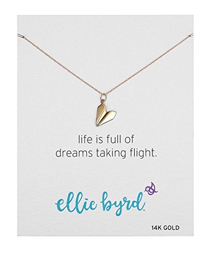 ellie byrd necklace featuring dainty paper airplane pendant in 14k yellow gold