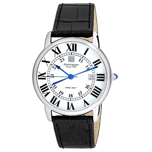 -. Title : Steinhausen Men's S0718 Classic Delémont Swiss Quartz Stainless Steel Watch With Black Leather Band