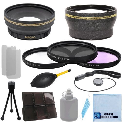 ? 0.43?X 오름 품위AF광각 렌즈??72?mm??서는 다른 모든 카메라&캠 코더로 합니다.72?mm크기렌즈 필터 스레드( ø58?)??광각 렌즈를 선택할 때,주의합니다.수치가 작을 정도로(수록),의 폭을 넓히고, 각도가 표시됩니다.예를 들면 A악명0.18?X는 초어안렌즈 버블 효과로,0.5?X는,「단지 광각 렌즈이다.이 특별한 렌즈0.43?X를 양방의 렌즈란 초광각 렌즈 어안렌즈의 부드러운 효과를 생성하는 것 를 할 수 있습니다.어떤 사진의 상황을 알기 쉽게 설명 합니다. ? 2.0?X 오름 품위AF망원 렌즈??52?mm??서는 다른 모든 카메라&캠 코더로 합니다.52?mm크기렌즈 필터 스레드( ø52?)??2.0?X망원 렌즈,2배에 가까운 액션을 선택합니다.사진에 최적인 스포츠 이벤트,솔직한 초상 쇼트에 덧붙여,자연과 야생 동물 등의 상황,장거리의 사진. ? 72?mm 3 매필터 키트??하나의 UV필터,1엔 편광 필터를 적용하거나,1형광 보정 필터」를 참조해 하십시오. ?고품질의 더스트 blower 클리너??더스트,얼룩부터 카메라의 이미지 센서 나오게 됩니다.이것에 의해보다 크게 선명한 화상을 표시합니다. ? Deluxe Starter Kit 미니 탁상 삼각,렌즈의 클리닝 유체,2유니버설 스크린 프로텍터와 5피스의 면봉입니다. ? 6 개메모리 카드 케이스??SD / SDHC Micro SD카드가 채용되어 있습니다. ?렌즈 캡 키퍼??원인에,렌즈 캡을 가리킬(찌를) 수 없는 것이 분실 하고 있습니다??사실상 모든 렌즈 캡에디자인되어 없는 경우가 있지만,구멍이나 룹이 가능하게졌습니다.