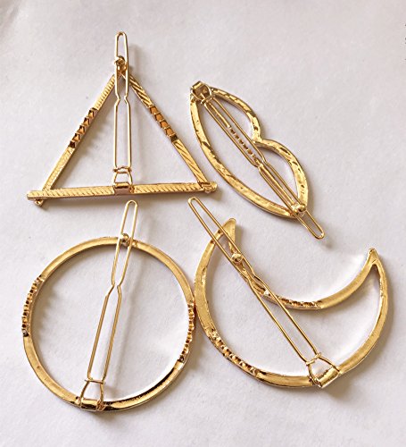 -. Title : QTMY 4 Pcs Round Circle Triangular Lips Moon Shaped Hair Pin Clips Hair Jewelry Hair Accessories