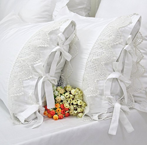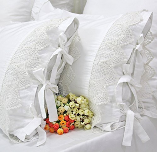 Queen's House Shams Pillow Cases White Queen Size Set of 2-J