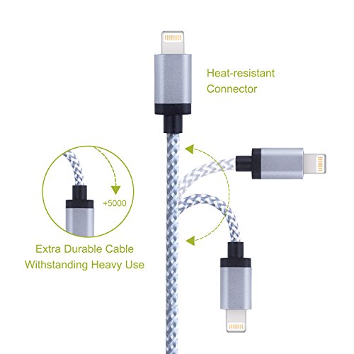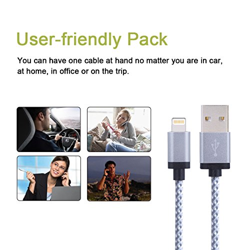 [Superior Durability] Covered with braided-nylon fiber jacket and anodized aluminum shell which is more durable and sturdier than the normal lightning cable but also flexible and tangle-free. The braided finish not only looks and feels great but also prevents tangles, increases strength and is easy to carry.
