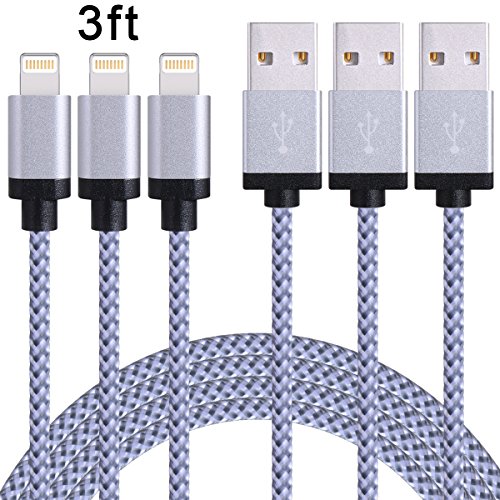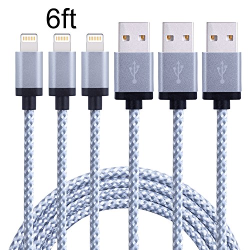 Eashion iPhone Lightning to USB Cable Braided Charging Cord for iPhone 6s, 6s plus, 6 plus, 6, 5s, 5c, 5, iPad Mini, Air, iPod Nano/Touch 3pack (White)