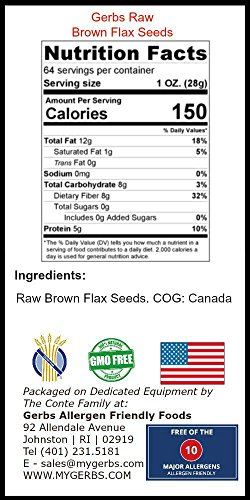 Raw Flax Seeds by Gerbs – 2 LBS - Top 10 Food Allergen Free & Non GMO - Vegan & Kosher Certified – Premium Brown Flax Product of Rhode Island