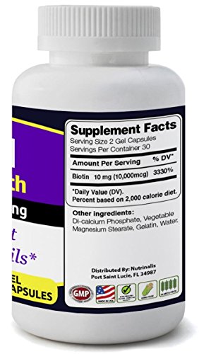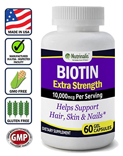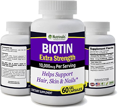 -. Feature : ★BIOTIN FOR HAIR, SKIN & NAILS SUPPORT* / ★BIOTIN SUPPLEMENT EXTRA STRENGTH FOR MEN & WOMEN. 10,000mcg Per Serving. / ★KOSHER & HALAL CAPSULES-Product is not Kosher & Halal Certified but capsules are. / ★MADE IN THE USA IN A TRUSTED FACILITY-Our Biotin is produced in a FDA Inspected and GMP Certified facility according to strict GMP guidelines to ensure you receive the highest quality product possible. / ★ 100% MONEY-BACK GUARANTEE! At Nutrinalis® we fully stand behind all of our products. Try our Biotin and see the difference for yourself. If you are not completely satisfied for any reason, we will gladly give you your money back, no questions asked!