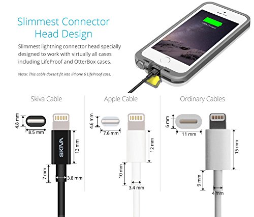 PERFECT FIT: Slimmest 8.5mm x 4.8mm (0.33in x 0.19in) heat-resistant Lightning connector fits into most case cutouts including LifeProof & OtterBox cases. (Note: Does NOT compatible with iPhone 6s/6 Lifeproof Case).