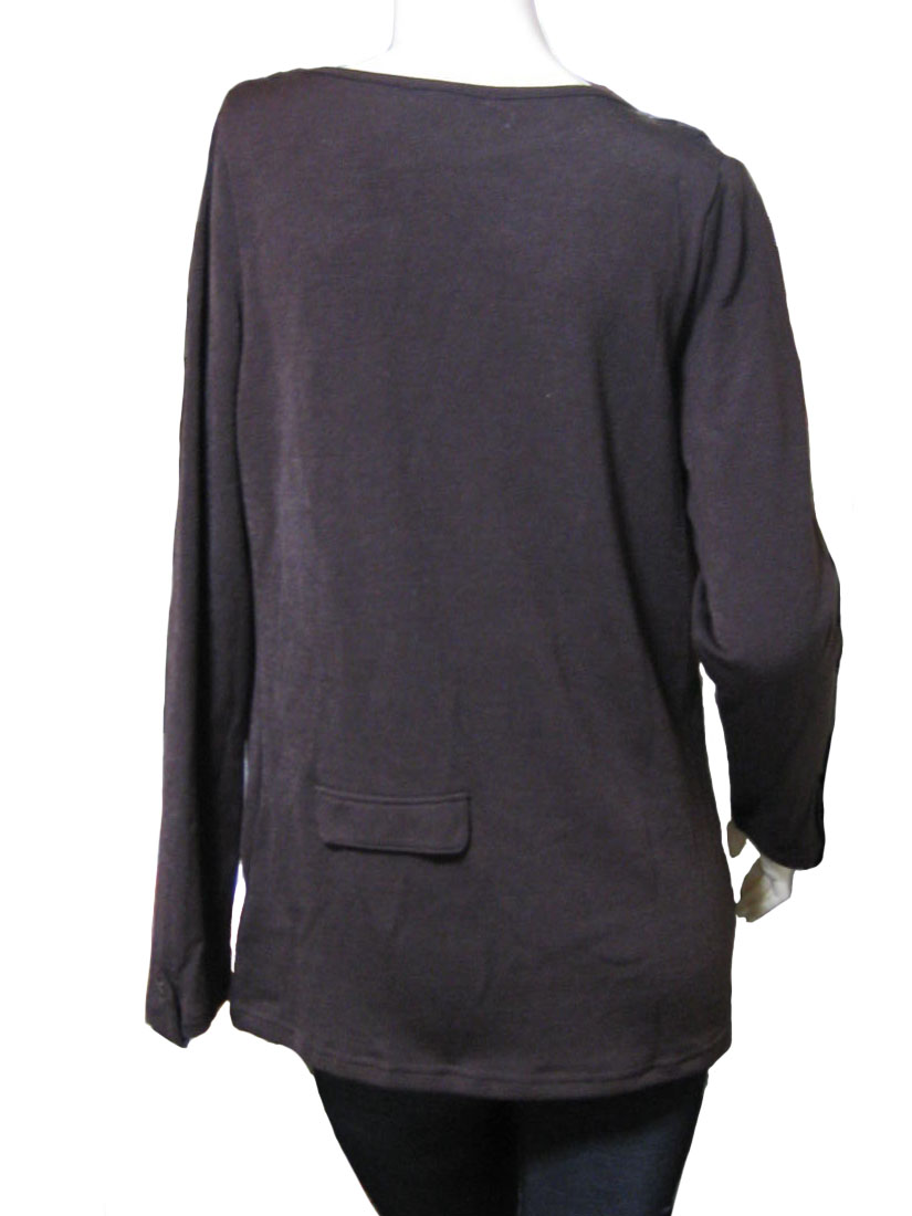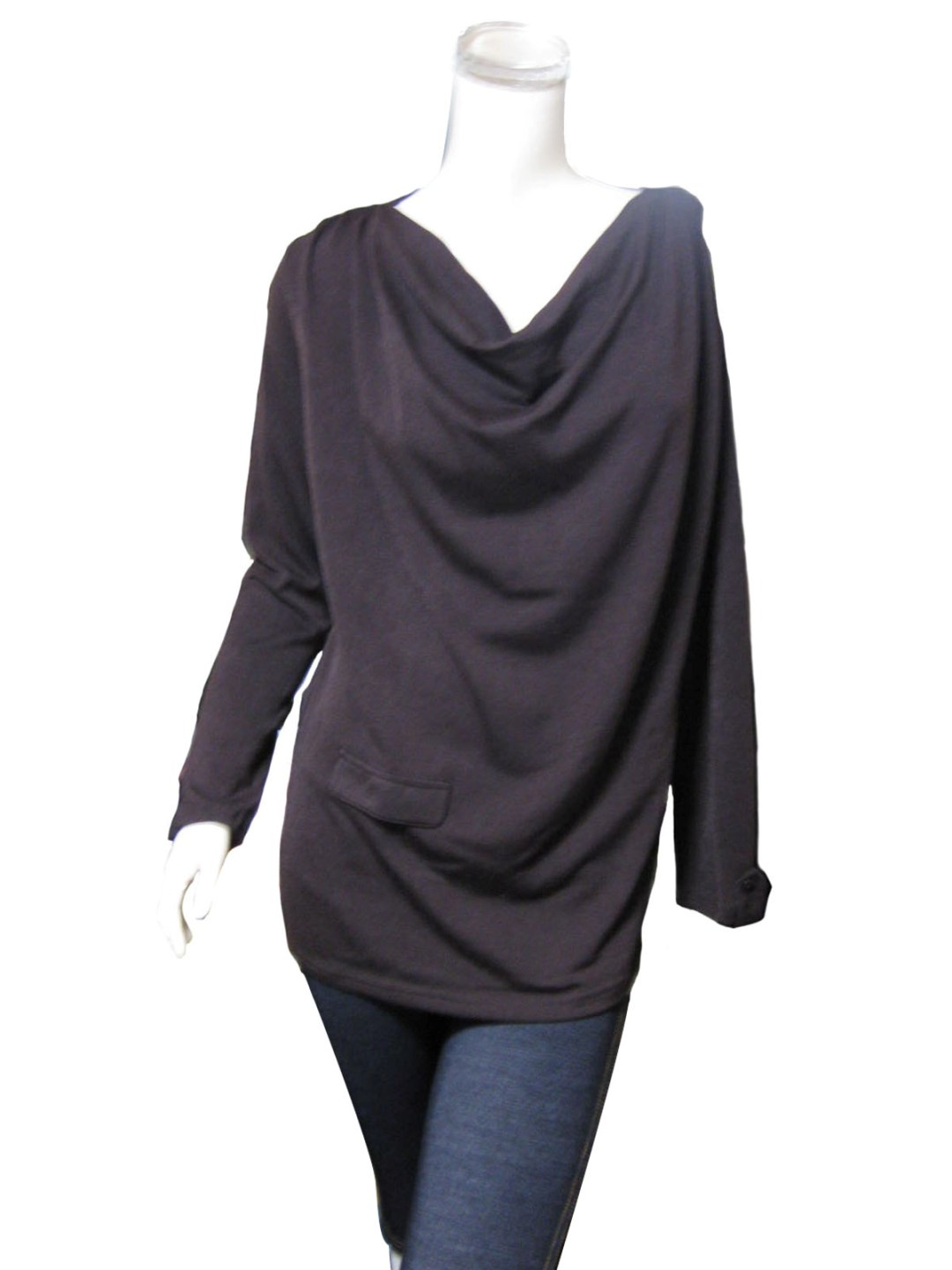 色は深いブラウン。中厚の柔らかな生地の長袖ニットソーです。
