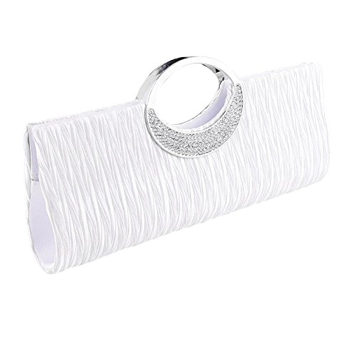 Type: Women Clutch Bag Gender: Women Style: Fashion Material: Satin, Alloy, Rhinestone Features: Shoulder Chain, Pleated, Buckles, Durable Size: 28cm x 11cm x 4cm/11.02" x 4.33" x 1.57" (Approx.) Chain Length: 118cm - 120cm/46.46" - 47.24" (Approx.) Great for wedding, party, banquet, shopping, etc. You can either use it as a clutch bag or a shoulder bag. You can put cards, coins, cash and other small items in it. Exquisite women clutch bag, a perfect gift for yourself or your friends. Please make sure that you bought the item in Floralby, other stores are not authorized by us.