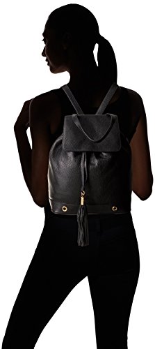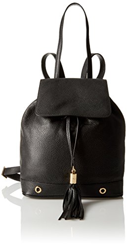 The astor backpack is crafted with pebble leather. It has flap closure on top, extended top handle to be worn as a shoulder bag, and zipper entry in the back.
